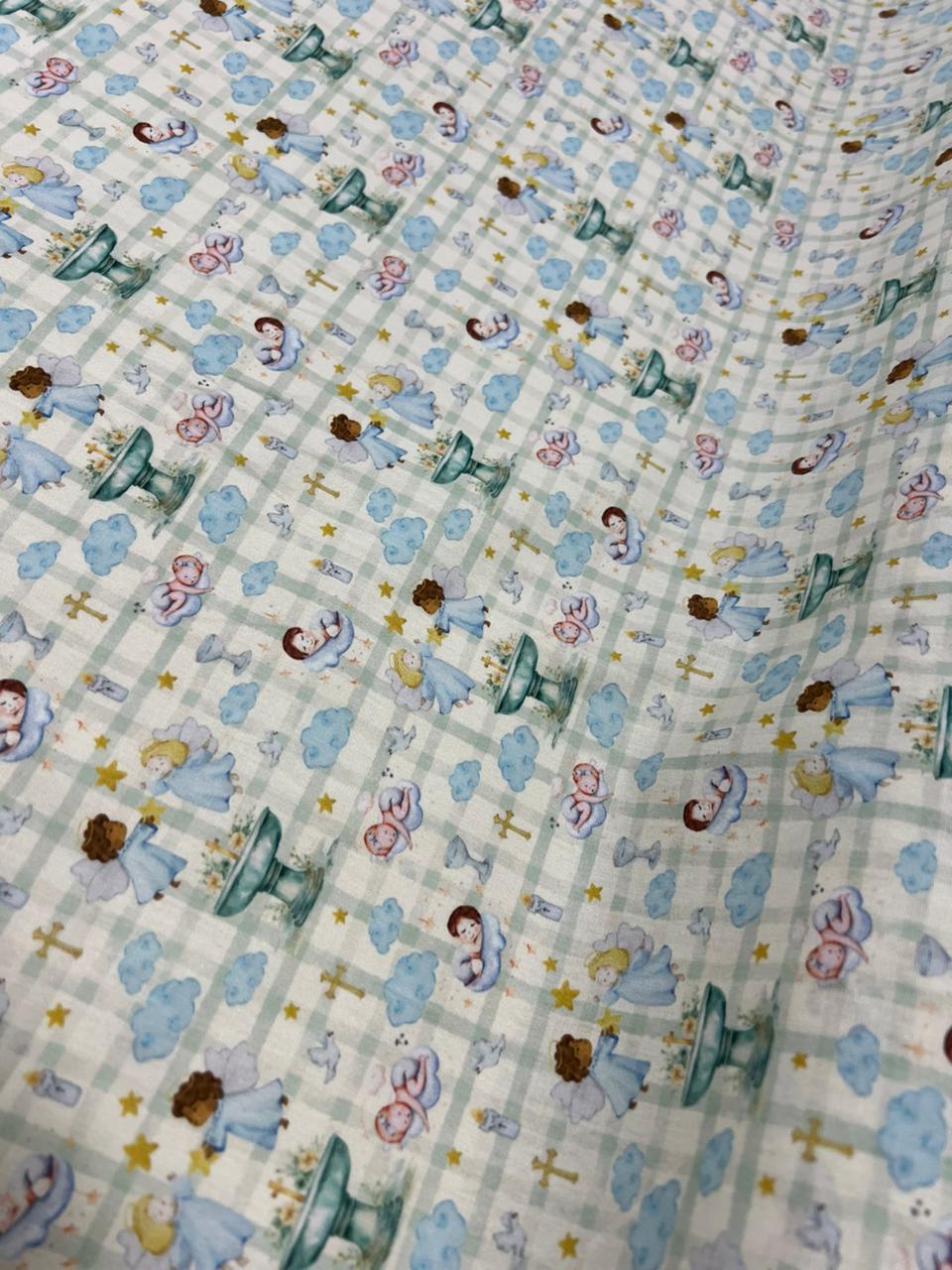Tecido Tricoline Estampado 100% algodão Digital Anjos