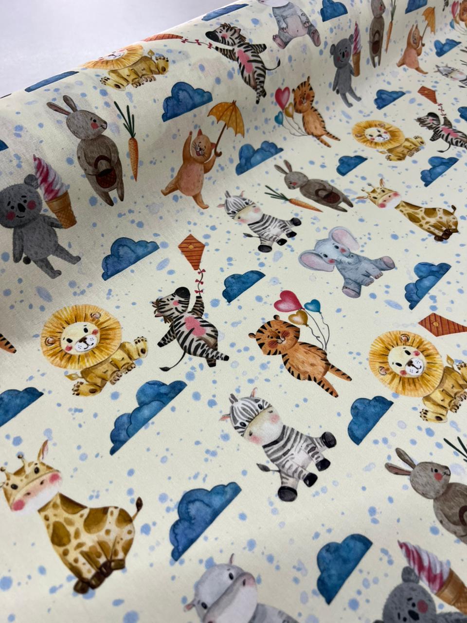 Tecido Tricoline Estampado 100% algodão Digital Safari E Nuvem