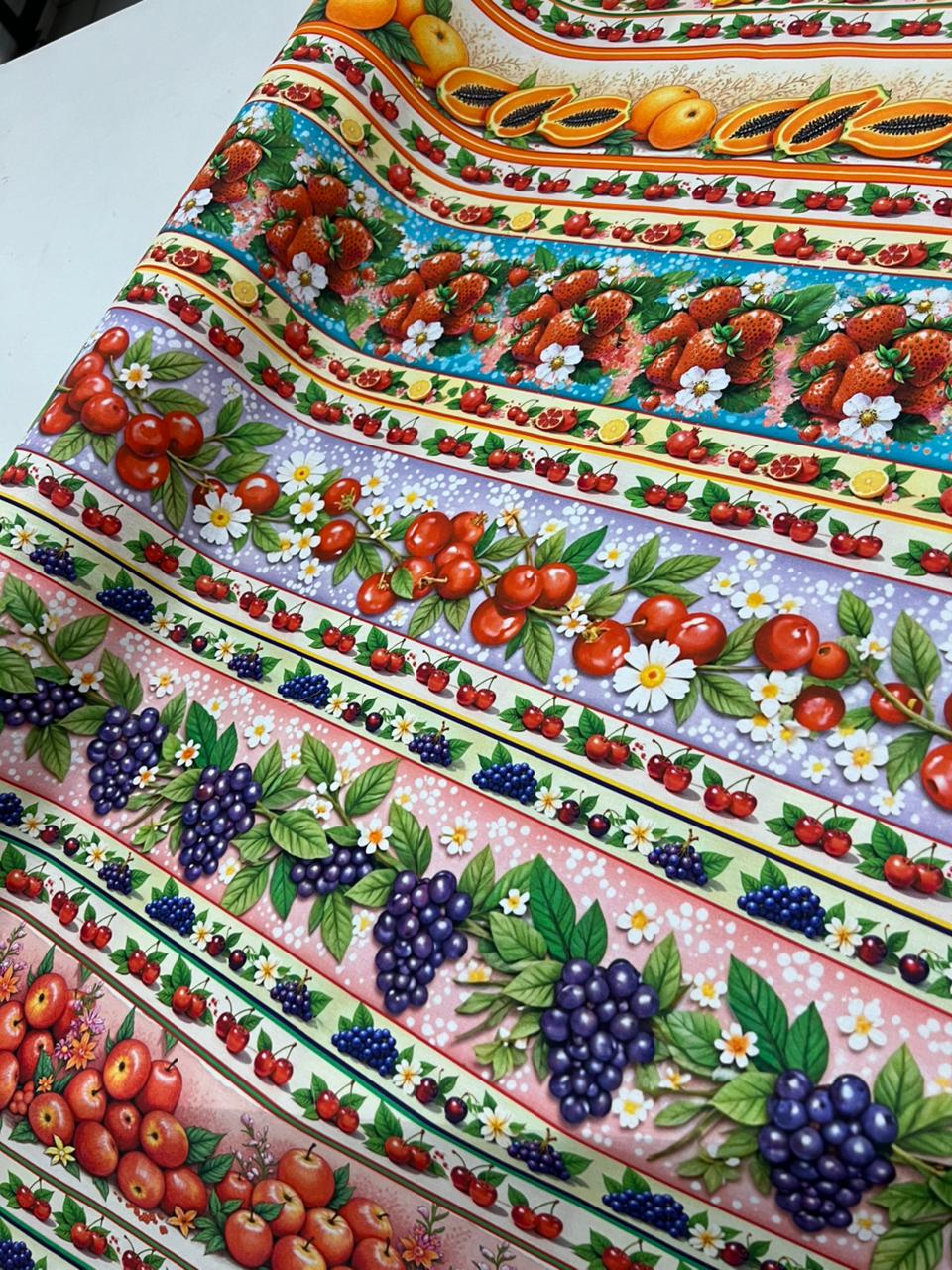 Tecido Tricoline Estampado 100% algodão Digital Barrado Frutas