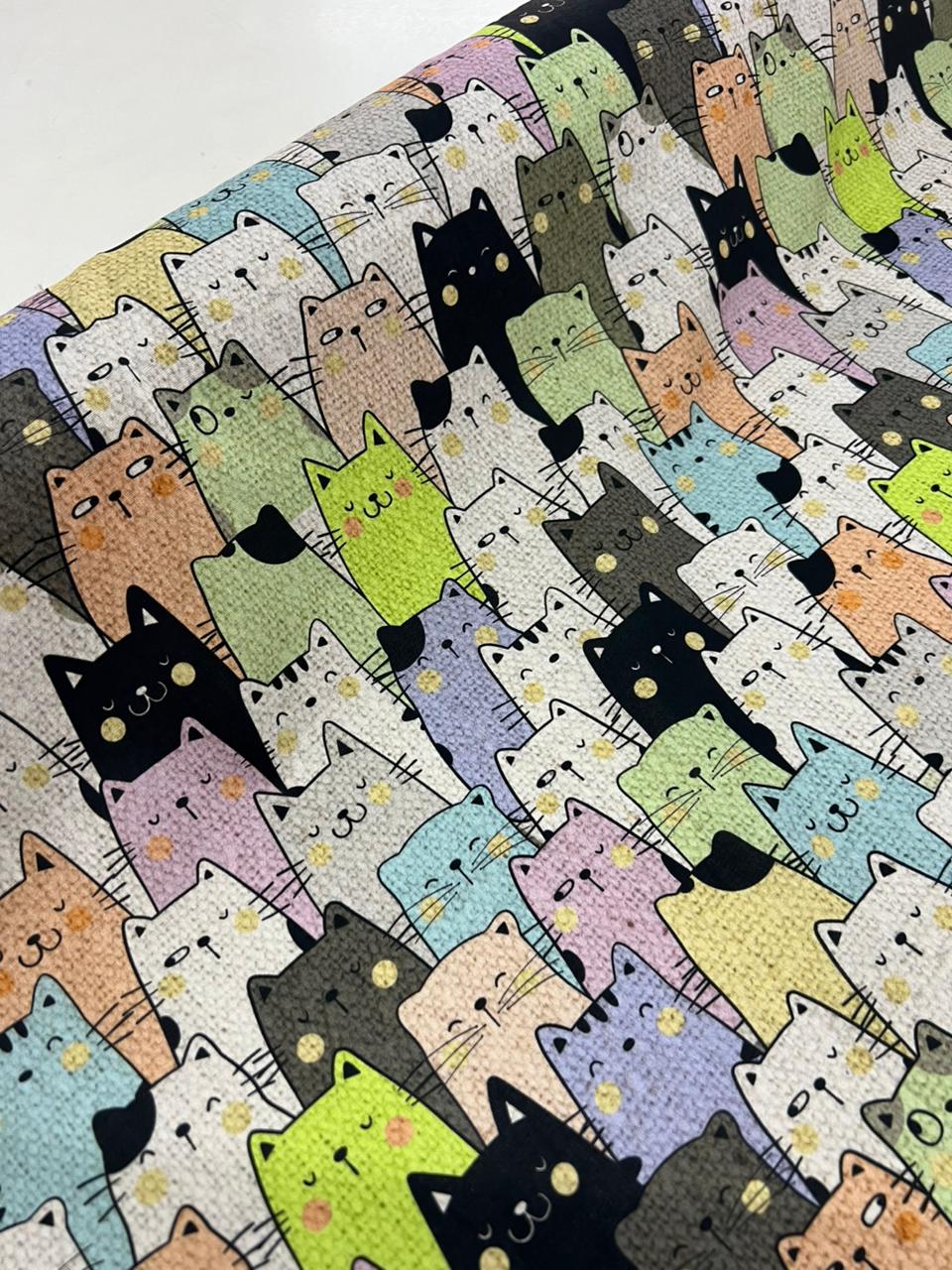 Tecido Tricoline Estampado 100% algodão Digital Gatinhos