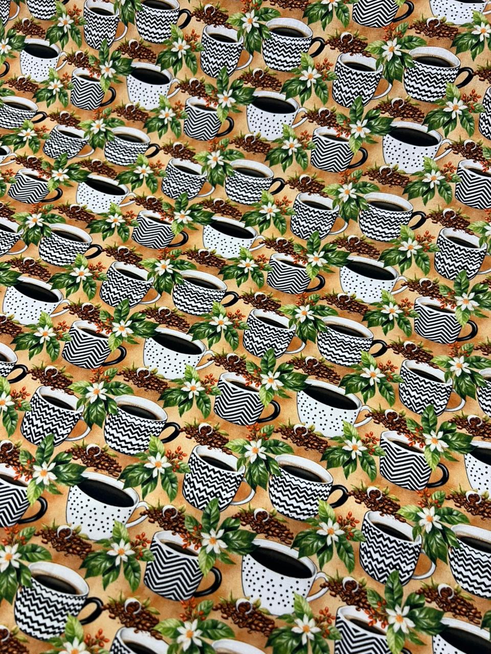 Tecido Tricoline Estampado 100% algodão Digital Xicaras Com Cafe